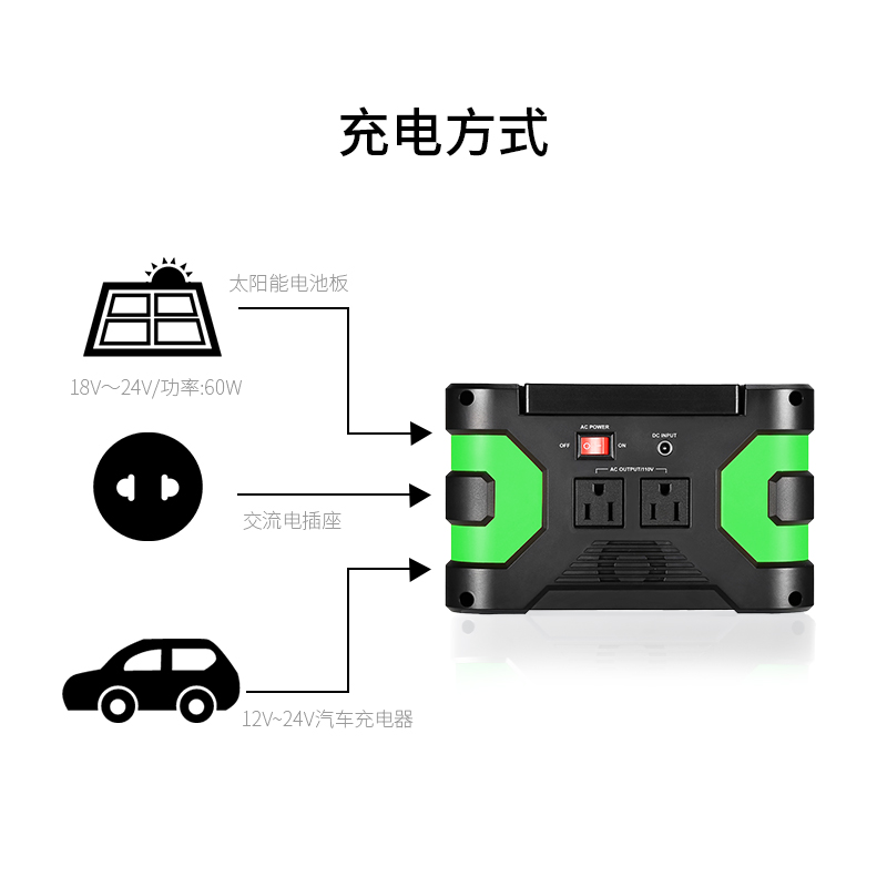 1. 純正弦波輸出,適用于手機(jī)、電腦、車載冰箱、手電筒、電風(fēng)扇等;